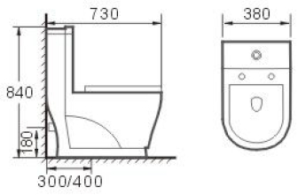Washdown one-piece toilet Size:730×380×830mm S-trap:250mm Roughing-in P-trap:180mm Roughing-in |