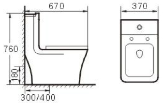 Washdown one-piece toilet Size:670×370×760mm S-trap:250/300mm Roughing-in P-trap:180mm Roughing-in |