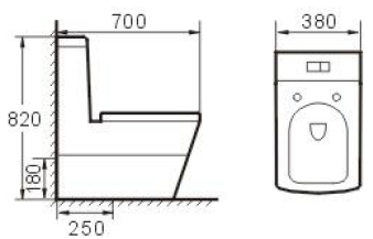 Washdown one-piece toilet Size:700×380×820mm S-trap:250mm Roughing-in P-trap:180mm Roughing-in |