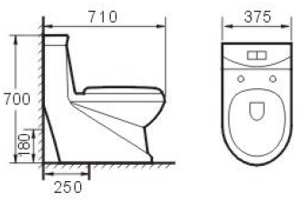 Washdown one-piece toilet Size:710×375×700mm S-trap:250mm Roughing-in P-trap:180mm Roughing-in |