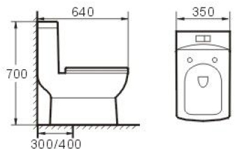 Washdown one-piece toilet Size:640×350×700mm S-trap:300/400mm Roughing-in |