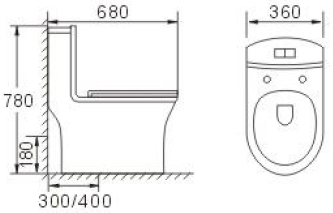 Washdown one-piece toilet Size:680×360×780mm S-trap:300/400mm Roughing-in P-trap:180mm Roughing-in |