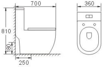Washdown one-piece toilet Size:700×360×810mm S-trap:250mm Roughing-in P-trap:180mm Roughing-in |