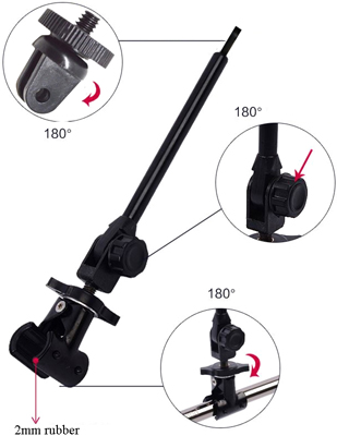 Cotton with a black foam grip, grip feeling good, Fit a long time operation. With retractable rod, Mirror turning 180 + 360 degrees and grip rod turning 180 + 360 degrees