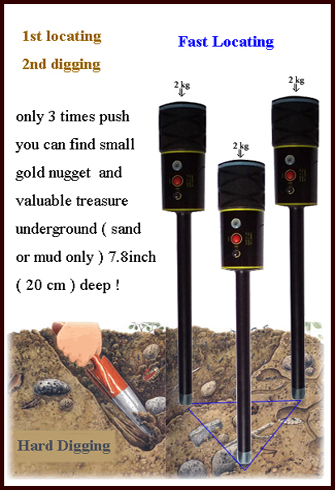 | Digging is hard working when you detecting underground coin or small gold nuggets, most of time you may destroy the grass and make dirty land. we develop the metal probe to solve the problem or reduce damage in some way. | |